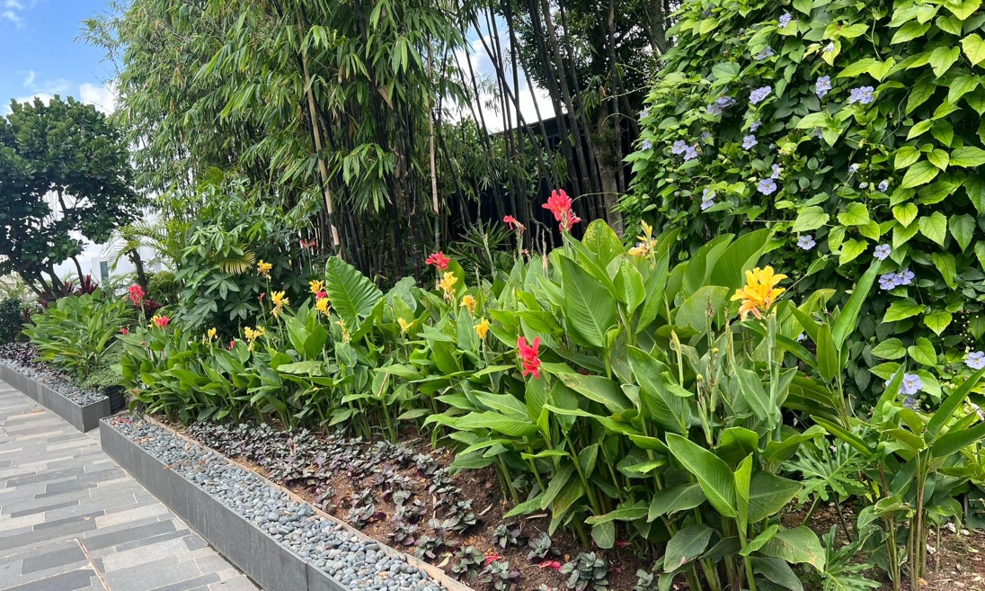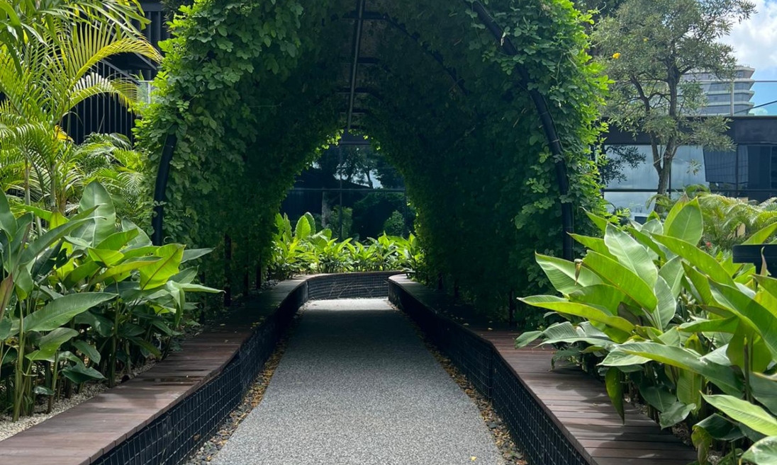 This showcases a thoughtfully designed outdoor space that blends functionality with natural beauty. The concept focuses on creating a welcoming and serene environment through structured greenery, clean pathways, and carefully selected plant arrangements that enhance the overall atmosphere.